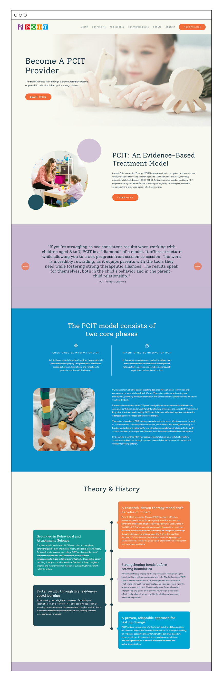 Now that PCIT International has a modern, professional website, clinicians can find certification and training information, parents can quickly find PCIT providers, and all visitors can easily find what they’re looking for. Most importantly, the organization’s expertise and esteemed reputation are finally on full display at pcit.org.
